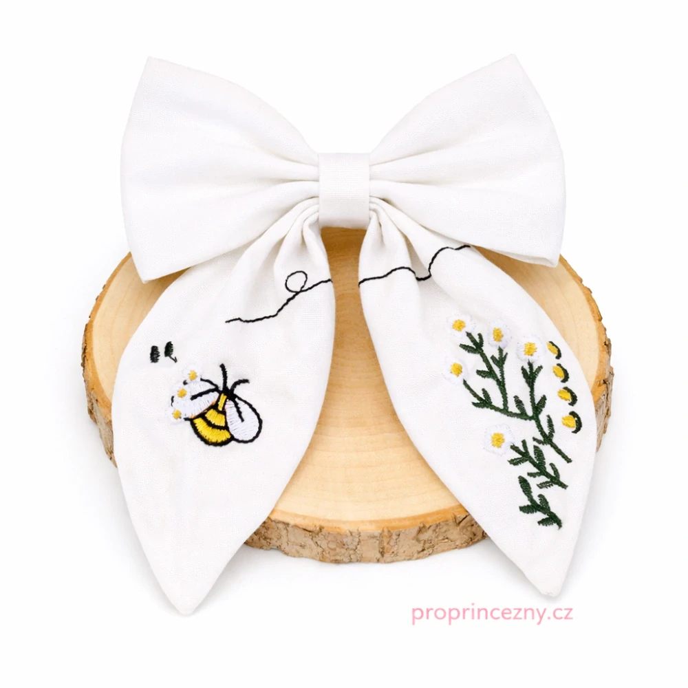 Sponka do vlasů s mašlí – bílá s výšivkou včelkySkladem 1 ks165 Kč/ ks