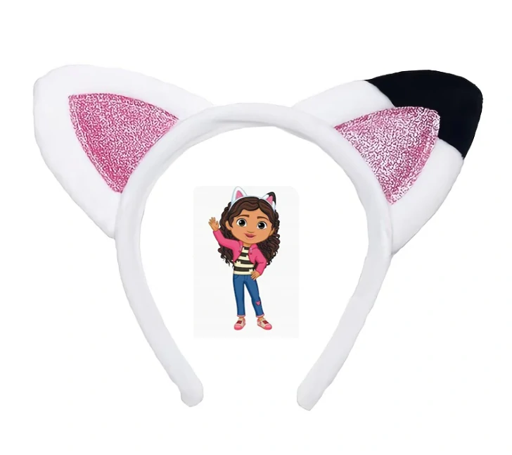 Tato krásná dětská čelenka s kočičími oušky v bílo-černém provedení s růžovým třpytivým detailem je ideální pro všechny malé parádnice. Dodá outfitu hravý a zároveň stylový vzhled.