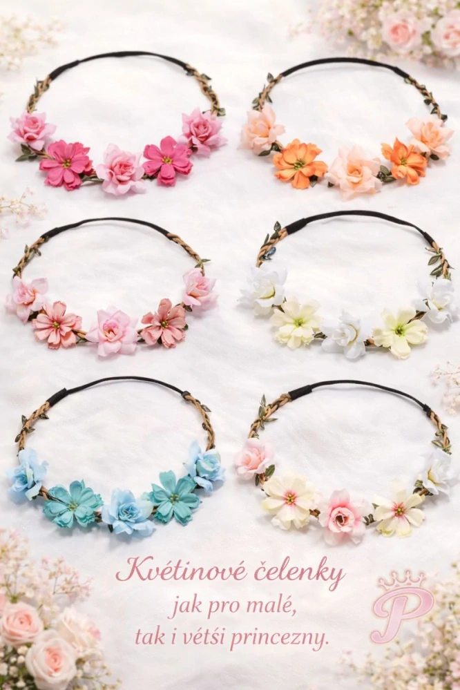 Dodejte outfitu vaší malé princezny ten správný kouzelný detail. Tato květinová čelenka je navržena tak, aby byla nejen krásná, ale i pohodlná. Jemné květy v harmonických barvách působí elegantně a romanticky – ideální ke slavnostním šatům, na focení, oslavy, svatby nebo jen tak pro radost.