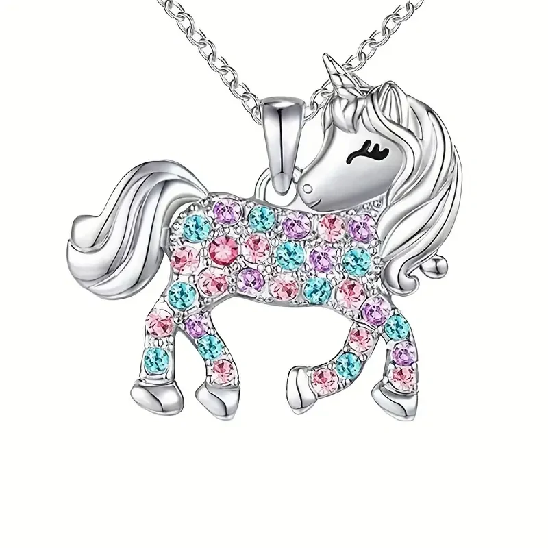 Dívčí řetízek s přívěskem jednorožce je jako z pohádky. Jemný stříbrný tón v kombinaci s barevnými třpytivými kamínky vytváří nádherný efekt, který si každá malá princezna zamiluje.