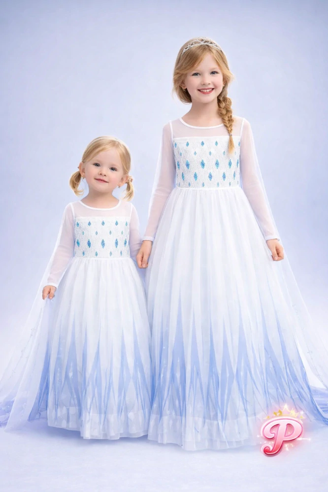 Tyto nádherné princeznovské šaty jsou splněným snem každé malé princezny. Elegantní střih, jemné zdobení a bohatá, lehce splývavá sukně vytváří kouzelný pohádkový vzhled, který okouzlí na první pohled.